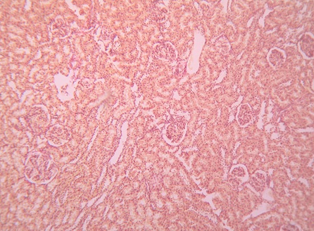 Figure 2. Microscope slide of an intact rat kidney. H&E staining, magn. ×100