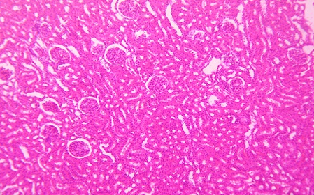 Рисунок 5. Микропрепарат почки крысы на 14-е сутки после дистанционного ударно-волнового воздействия. Окраска гематоксилин-эозин, ув. ×100